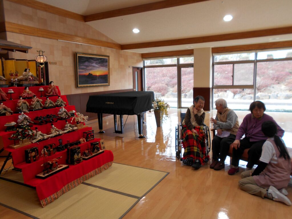 可愛い雛人形が飾られ、毎日お年寄りが入れ替わり立ち替わり訪れて、笑顔で見上げています。